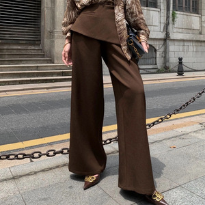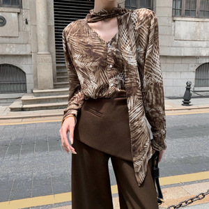 2025秋季新品法式高级感V领长袖衬衫飘带上衣+拼接阔腿裤两件套女