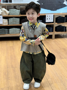 男童秋装套装2025新款帅气韩版宝宝衣服儿童春秋季毛衣马甲三件套