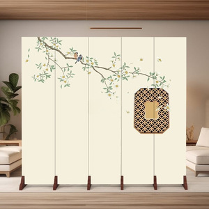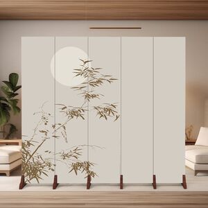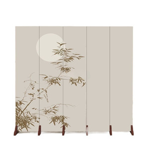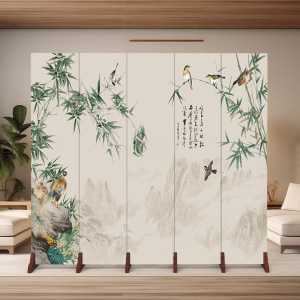现代中式淡雅意境屏风隔断折叠移动客厅酒店装饰水墨竹子月圆折屏