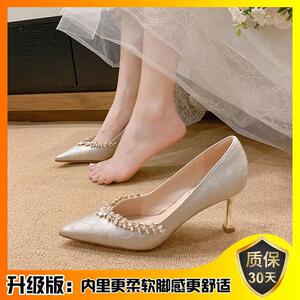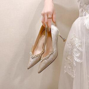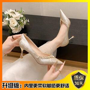 绝美婚鞋新娘鞋法式结婚伴娘高跟鞋女不累脚2025新款秀禾婚纱两穿