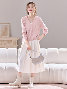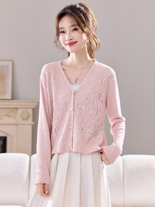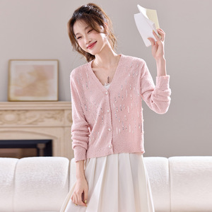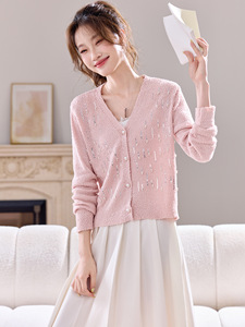 2025V领短款宽松新款针织毛衣外套学院风秋冬亮片女式韩版开衫潮
