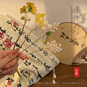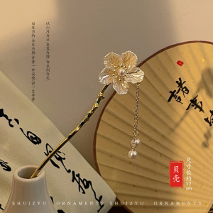 70#蝴蝶珍珠花流苏发簪-金色