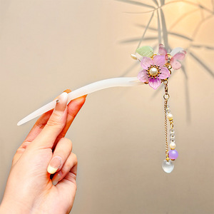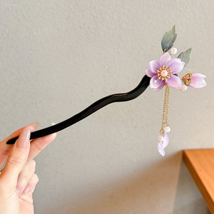 2#紫色花朵珍珠流苏发簪