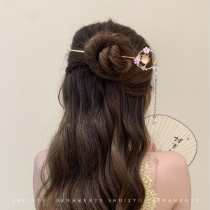 11#粉色花环猫眼流苏发簪(袋装)
