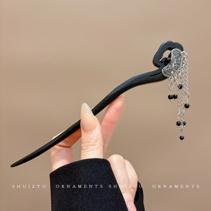 57#黑色发簪-月亮吊坠