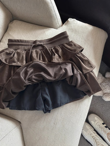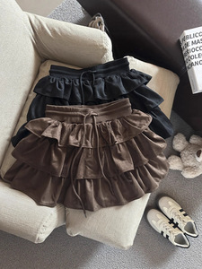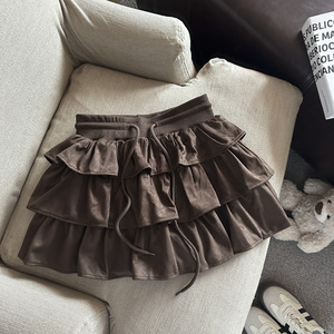 法式气质荷叶边抽绳蛋糕短裙2025春秋新款辣妹仿鹿皮绒半身裙女潮