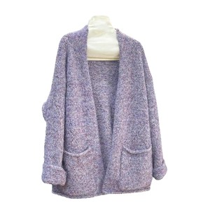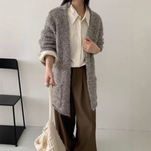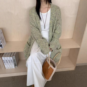 羊毛混纺夹花毛衣开衫女2025秋冬粗线加厚中长款软糯慵懒针织外套