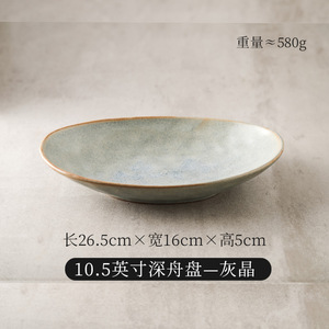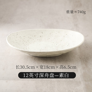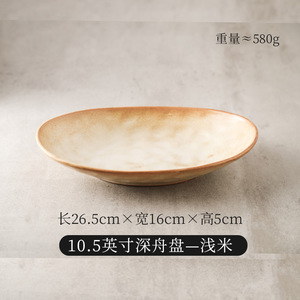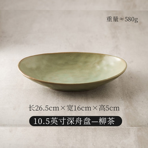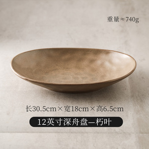 日式复古陶瓷餐盘家用椭圆碗鱼盘沙拉碗凉菜盘船型元宝盘餐厅餐具