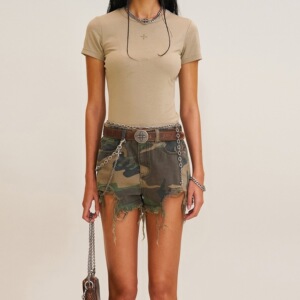 SMFK十字印章修身运动Tee 高弹力醋酸亲肤微收腰T恤短袖