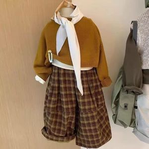 韩版男女童套装2025新款秋季洋气宝宝时髦针织衫格子休闲裤两件套