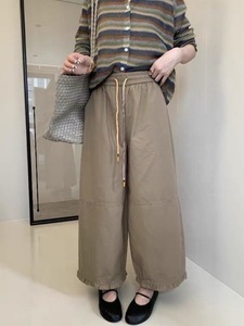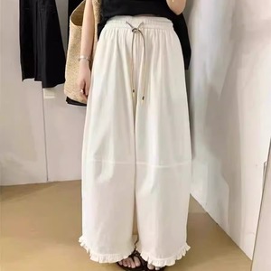 韩系松紧腰抽绳木耳花边休闲裤女2025秋季新款显瘦百搭阔腿直筒裤