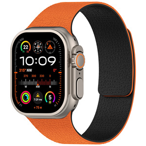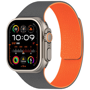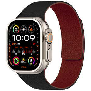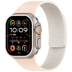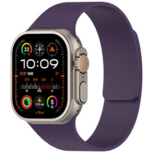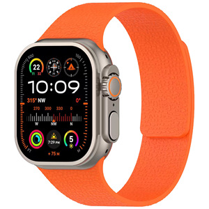 适用苹果手表带Apple Watch荔枝纹表带 Ultra荔枝纹硅胶磁吸表带