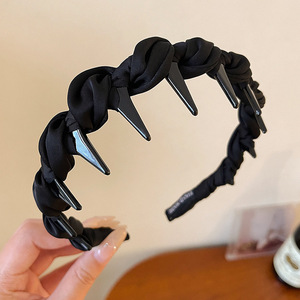 黑色缎面褶皱齿梳发箍-3.5CM
