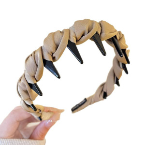 咖色缎面褶皱齿梳发箍-3.5CM