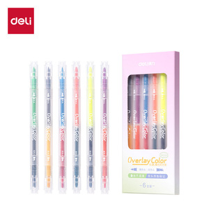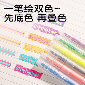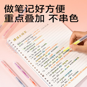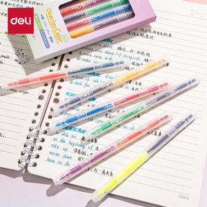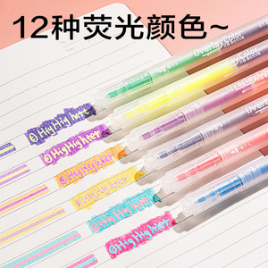 得力双头荧光笔醒目12色手账笔可叠色标注标记笔记号笔彩色划重点
