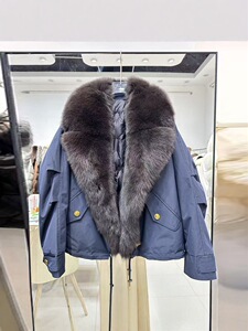 欧洲站2025冬新款奢华皮草狐狸毛领羽绒服女短款宽松加厚派克外套