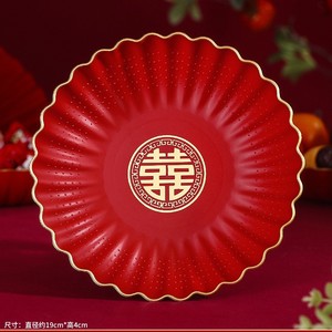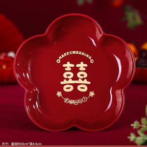 红色塑料水果盘结婚家用客厅干果盘订婚礼喜糖盘子零食糖果摆放盘