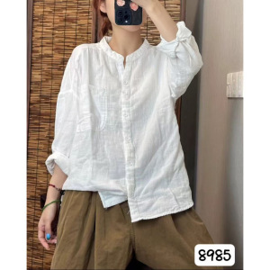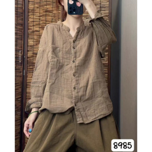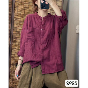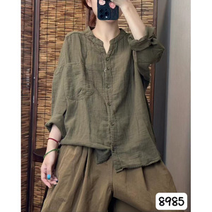 2025秋韩版宽松贴布大口袋双层纱立领衬衫百搭休闲衬衣女8985