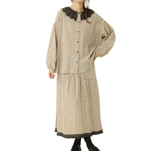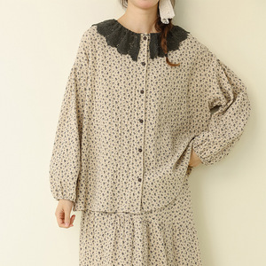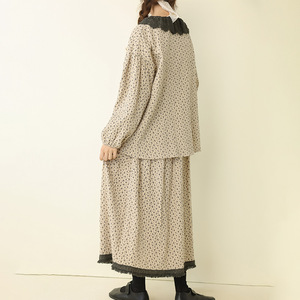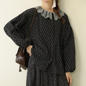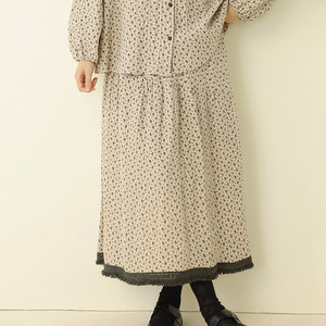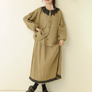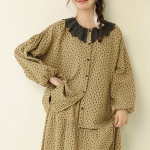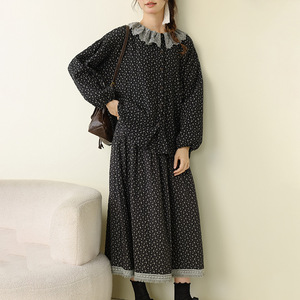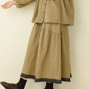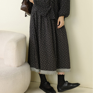 秋季新款文艺复古碎花娃娃领上衣拼接毛边半身裙宽松时尚休闲套装
