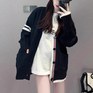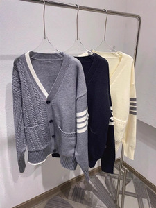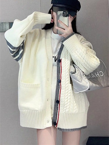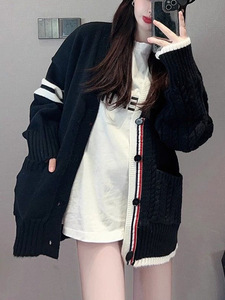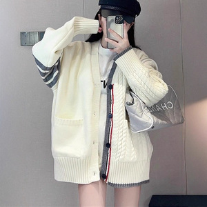 韩系早秋v领毛衣外套女春秋季学院慵懒风宽松外贸针织衫开衫上衣
