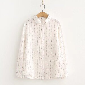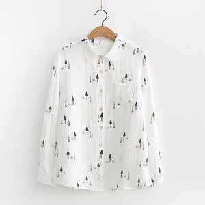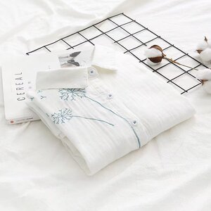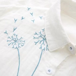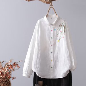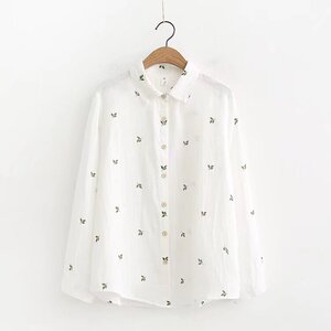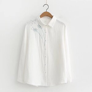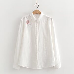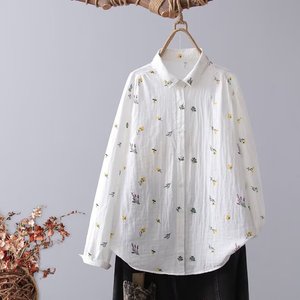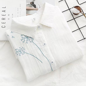 2025春装双层棉纱长袖衬衫女韩版文艺宽松刺绣女士柔软衬衣