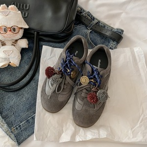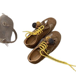 增高3cm~ 2025秋季新款软底时髦撞色鞋带圆头松果休闲德训板鞋女