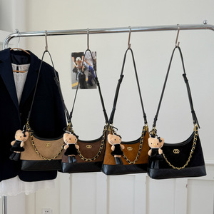 斜挎包时尚复古小香风菱格链条腋下单肩包洋气百搭撞色手提托特包