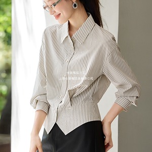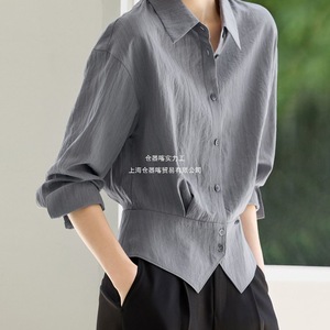 法式气质女士衬衫上衣2025秋季通勤小衫收腰显瘦衬衣蓝灰色