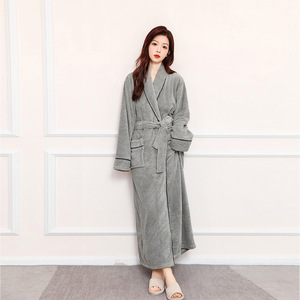 秋冬季加厚成人浴袍女珊瑚绒睡衣情侣加长款大码浴衣舒适睡袍保暖