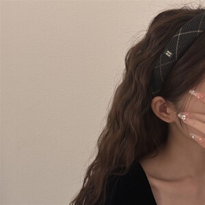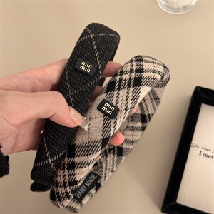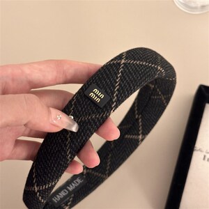 经典黑灰格纹发箍复古学院风头箍增高颅顶发卡压发发饰秋冬头饰品
