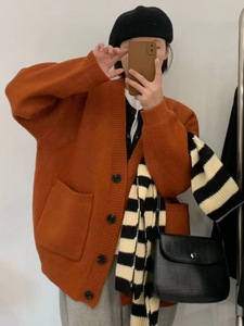 2025秋冬新款韩版V领纯色毛衣外套女宽松百搭休闲慵懒风针织开衫