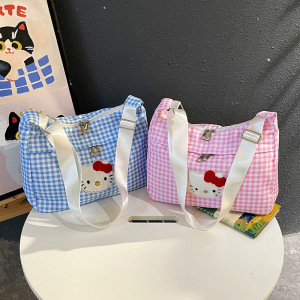 韩国腋下包新款小猫包百搭帆布包包女格子E8手提水桶包时尚潮2025