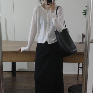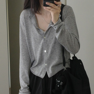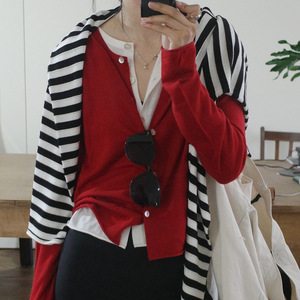 慵懒风休闲百搭柔软舒适圆领长袖针织衫打底衫开衫上衣女