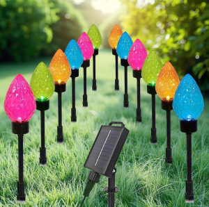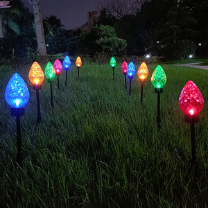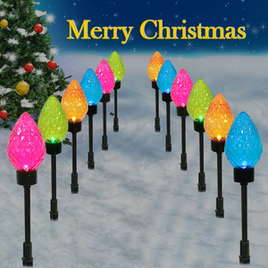 跨境新款太阳能一拖十二草莓C9浆果草坪地插灯圣诞节日花园草坪灯