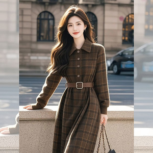 今年流行美拉德千金长裙气质轻奢高级感小香风格纹连衣裙女秋季