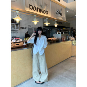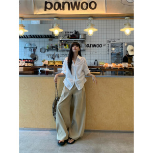 2025早秋原单显瘦老钱风复古高级感气质长袖衬衫休闲阔腿长裤套装