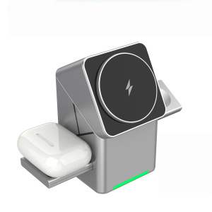 魔方旋转15W磁吸无线充支架适用于苹果耳机手表手机三合一充电器