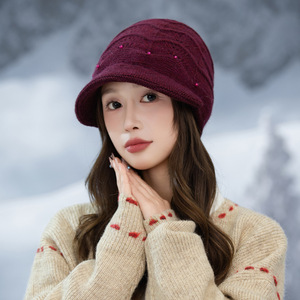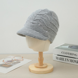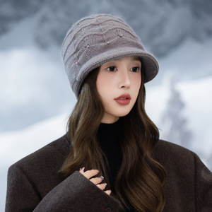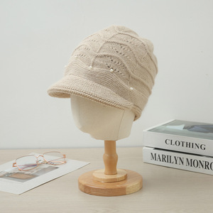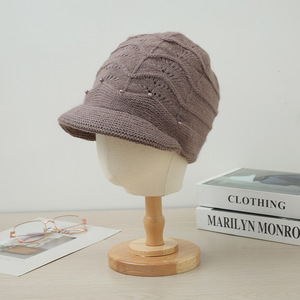 帽子女韩版百搭珍珠加厚针织帽秋冬时尚休闲防风保暖帽高级感盆帽