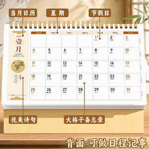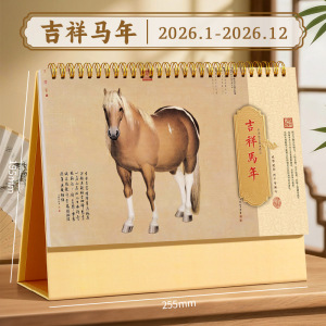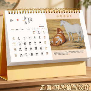2026台历定制新款马年国风插画款日程记事轻奢金架企业桌面摆件