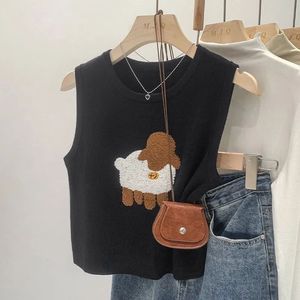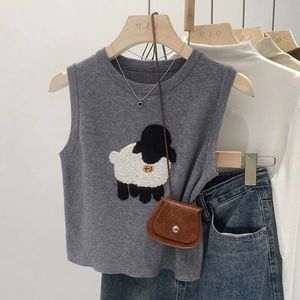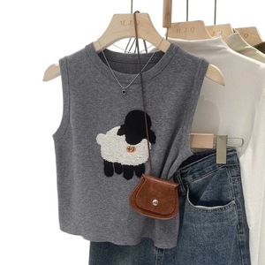 重磅小羊短款螺纹背心夏季2025新款圆领设计感小众无袖上衣