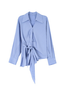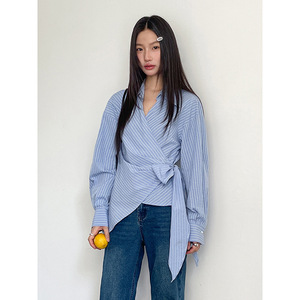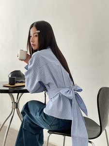 【拯救乏味】歌铭设计感蝴蝶结系带衬衫女秋季新款条纹上衣T1976F
