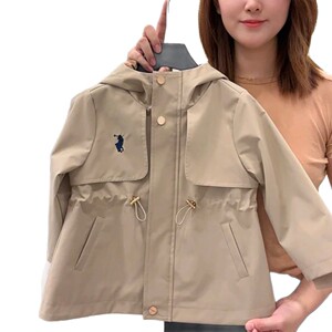 儿童男童女童春秋时尚款经典连帽长袖外套纯色收腰大衣秋季新款