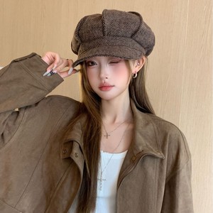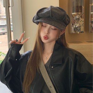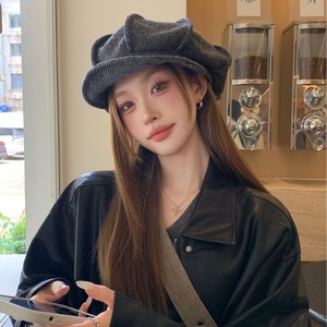 韩版复古百搭八角帽子女春秋季时尚简约贝雷帽大头围云朵画家帽潮
