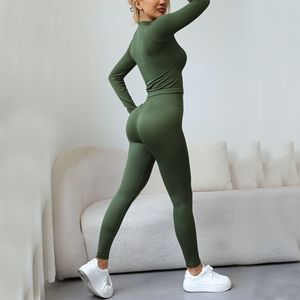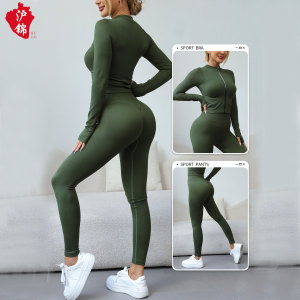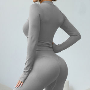 跨境欧美无缝TK热销速干美背瑜伽套装休闲修身百搭显瘦拉链瑜伽服