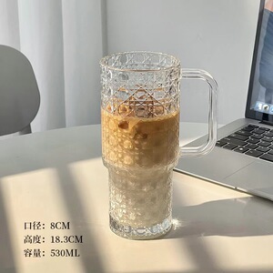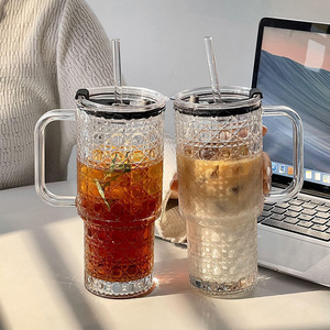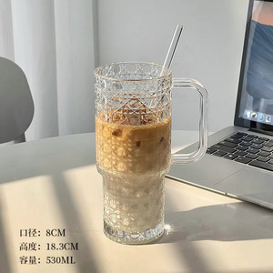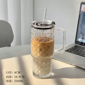冰霸杯带把手吸管杯大容量玻璃杯女生高颜值带盖办公室咖啡水杯子