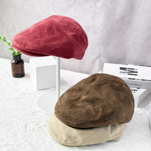 批发25年早秋新款文艺前进帽复古纯色保暖百搭帽子女英伦风短檐潮