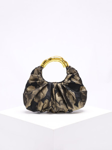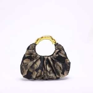 跨境风新中式包包国风浅金艺术花朵手拎包不对称手提包高级旗袍包