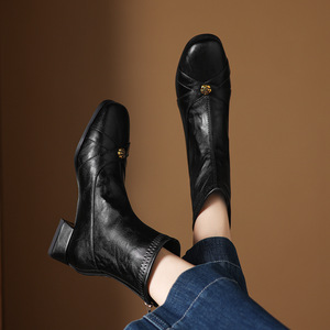 32--43大小码靴子新款粗跟低跟短靴女骑士靴2025秋冬简约女靴跨境