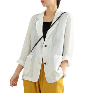 棉麻西装外套女亚麻2025春秋新款大码宽松上衣百搭休闲小西服外穿