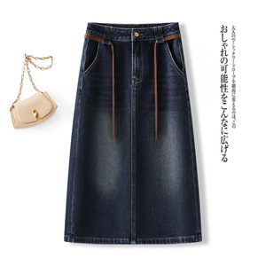 蓝色牛仔半身裙女2025新款秋季高腰a字裙包臀裙宽松时尚直筒半裙